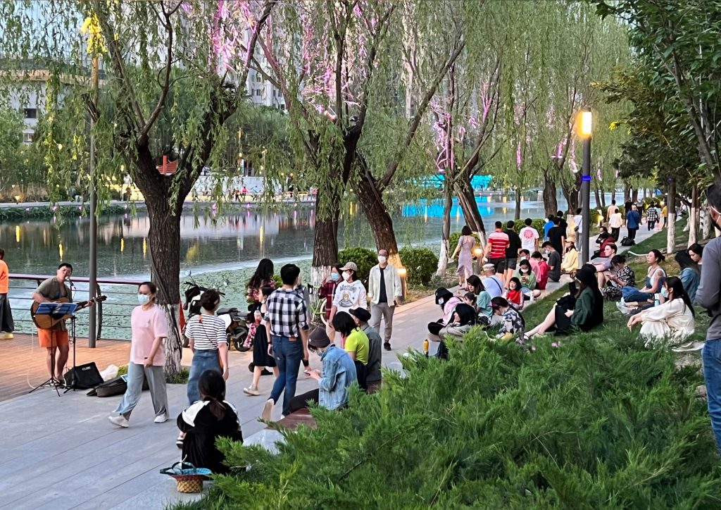 Crowds gather at the Liangma riverfront after restaurants were closed down. These gatherings were effectively forbidden a couple of days later.