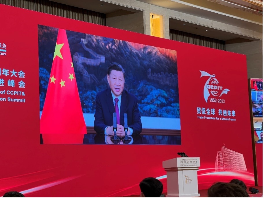 President XI Jinping addresses the CCPIT 70th Anniversary forum.