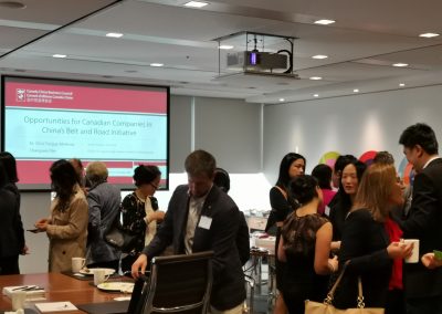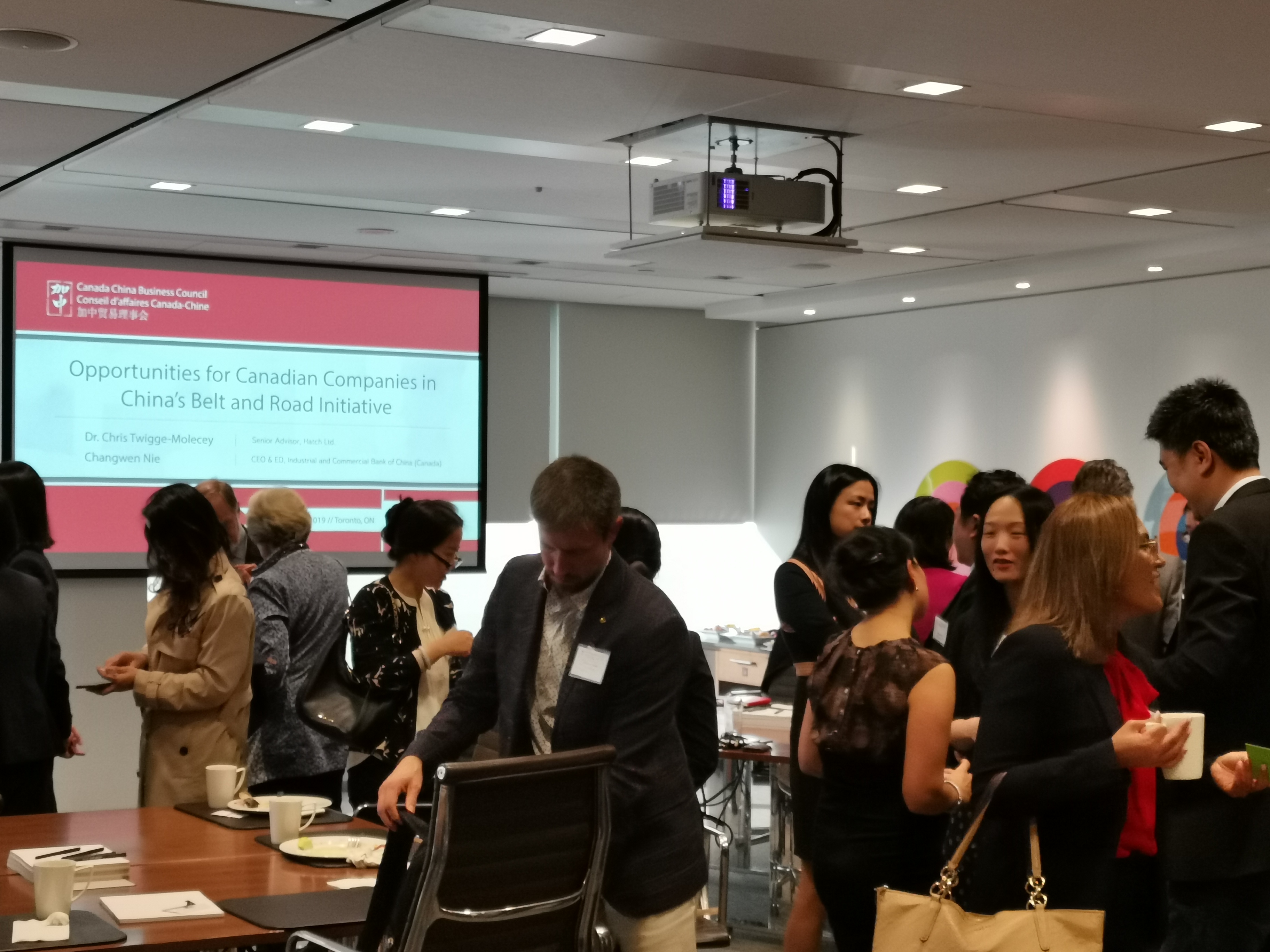 CCBC held an information session on China’s Belt and Road Initiative (BRI) on September 19, 2019 in Toronto. Chris Twigge-Molecey shared his perspectives on the possible opportunities available for Canadian businesses in China’s BRI and how business people can move forward. Following his overview, Ms. Changwen Nie, the CEO & ED of Industrial and Commercial Bank of China (ICBC, Canada), discussed ICBC Group’s experiences in financing BRI projects for foreign companies and areas that ICBC can assist Canadian businesses. After the presentations, attendees were invited to participate in a Q&A.