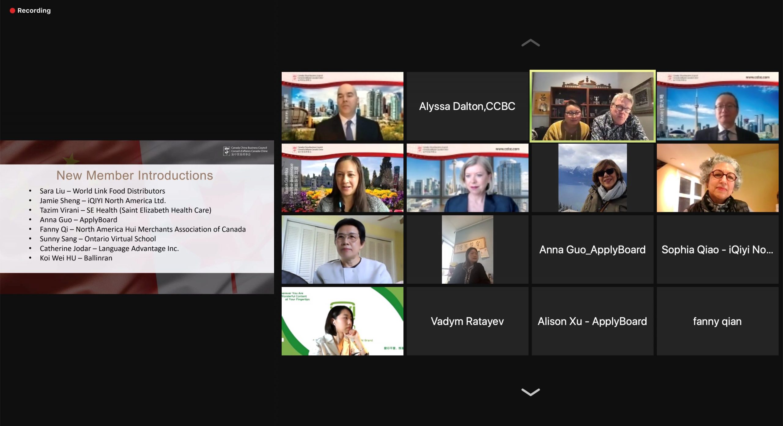 On April 27, 2021, CCBC held its first New Member Session of the year, designed to help CCBC members learn how to best take advantage of their membership. Participants were able to introduce their business; network with other members within the Canada-China business community; and learn about the unique, exclusive benefits available to CCBC members.