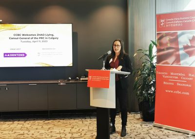 On Tuesday, April 11, 2023, CCBC welcomed ZHAO Liying, the newly appointed Consul-General of the People’s Republic of China in Calgary, and honoured guest speaker at a sold-out networking reception. CCBC Executive Director & COO Sarah Kutulakos introduced Consul-General ZHAO Liying to local CCBC members and Canada-China business community, and guests from across the province joined us in welcoming Calgary’s new Chinese Consul-General and met with local CCBC representative Lotta Ygartua, Regional Director, Western Canada, in person.