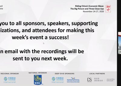 CCBC completed the third and final Interactive Deep Dive of its virtual event, Riding China’s Economic Wave: The Big Picture and Three Close-Ups, on November 27. Part of a larger program that ran from November 24-27, the virtual event was designed for Canadian companies doing business in China or considering this market in their global business plans. The program allowed participants to gain a better understanding of business in China, the opportunities available and the skills needed to be successful. Attendees received a comprehensive overview of topical business matters, heard case studies and joined a discussion with the speaker to apply learnings to their own companies.