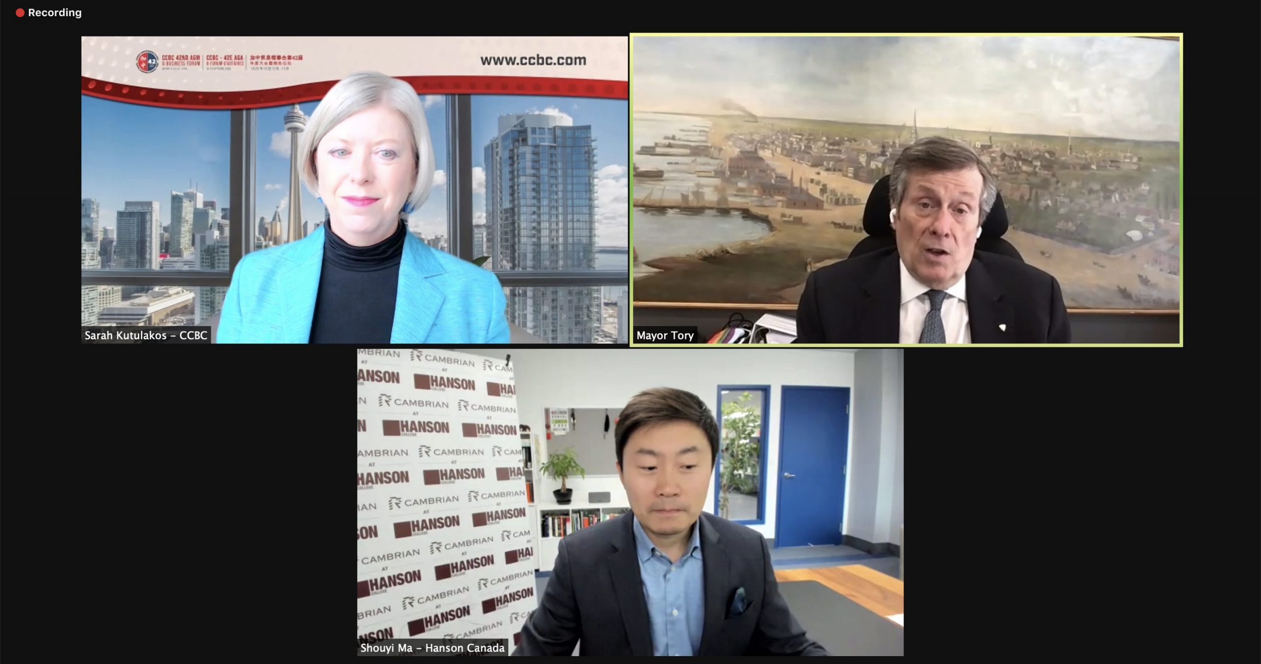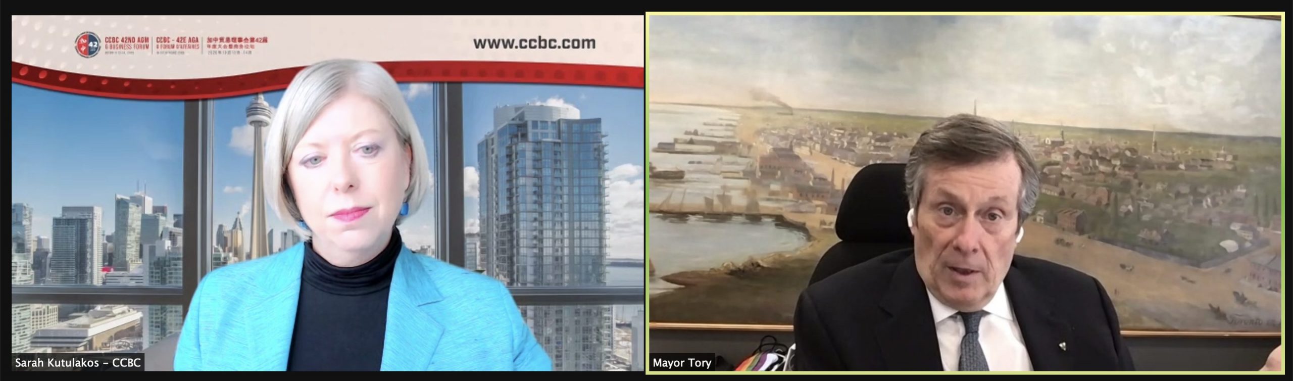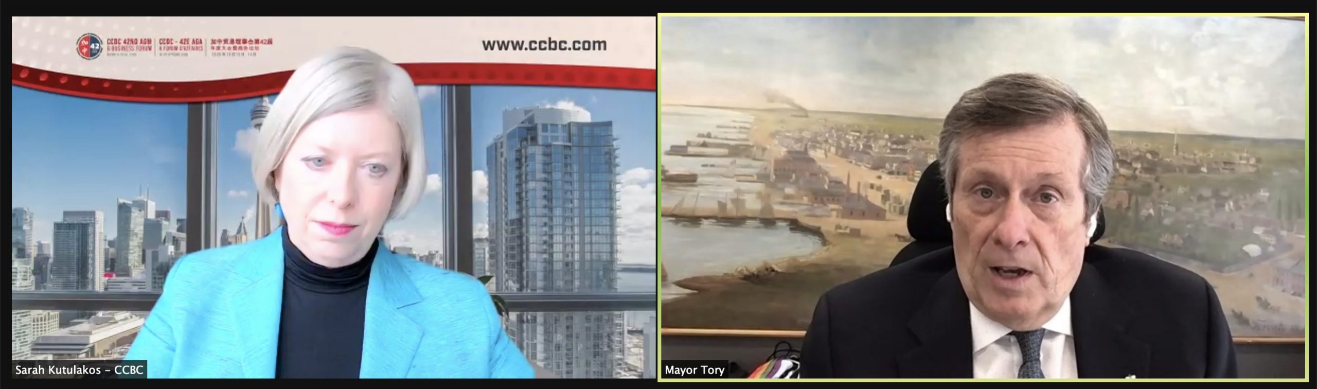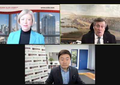 On March 1, 2022, CCBC held a virtual fireside chat with Toronto Mayor John Tory on the City of Toronto’s post-pandemic economic recovery plan, and how Toronto can attract investment, trade, international students and tourists from China and beyond. Hosted by CCBC Executive Director & COO Sarah Kutulakos, the session was free of charge for CCBC members in good standing.